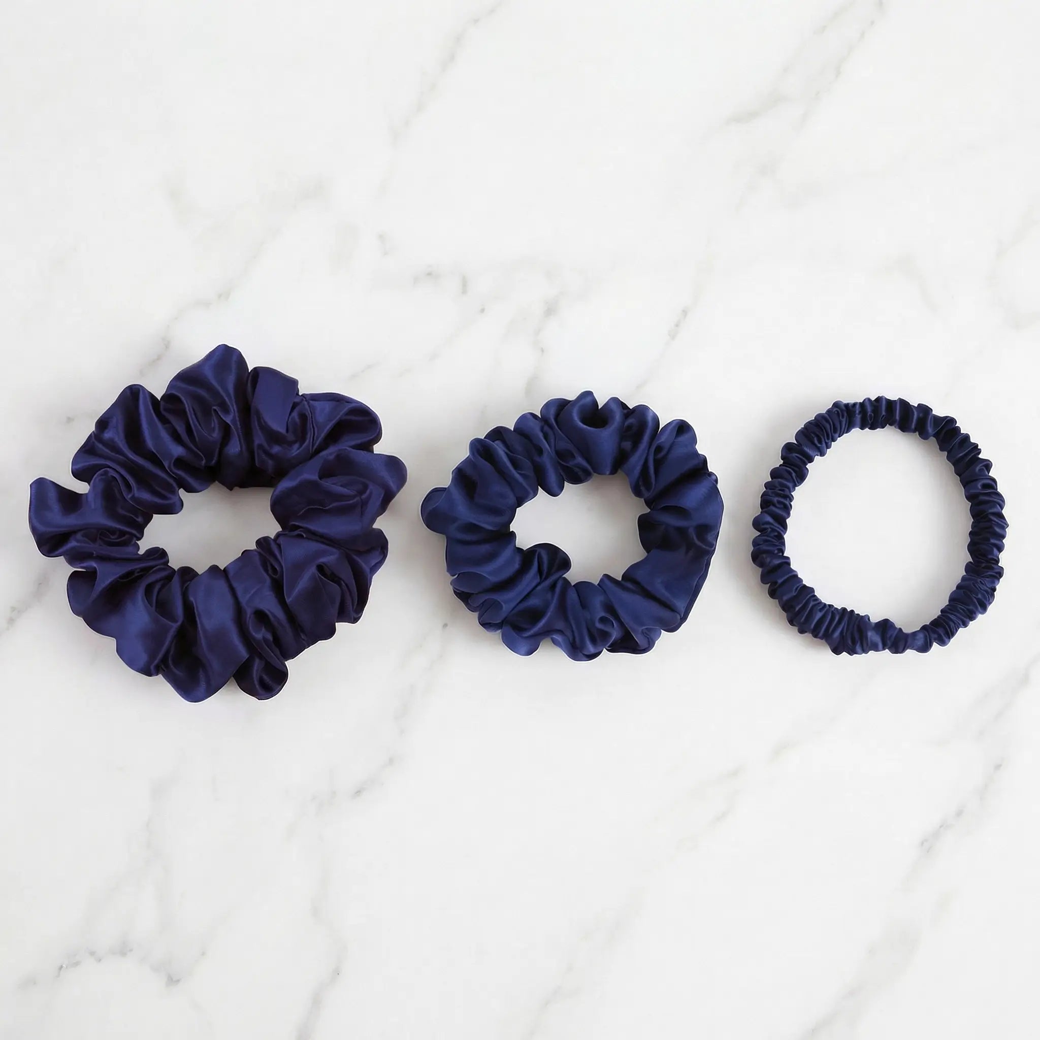 The Skinny for focus and movement. The Classic for your everyday look. The Statement for sleeping, loose updos, and the moments when your hair needs the most protection. One trio designed to cover every part of your day — and night.